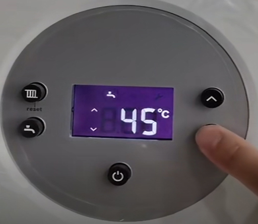3. 通过“上下键”调节所需采暖温度:适配暖气片系统时,建议设定温度为50-65℃,兼顾取暖效果与节能;适配地暖系统时,建议设定温度为40-50℃,低温运行更符合地暖散热特性,且能降低能耗。