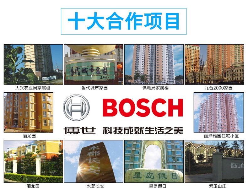- 博世全域自适应系统,能自适应调节负荷、风机转速、供水温度、水泵转速,让采暖热水更灵活。
