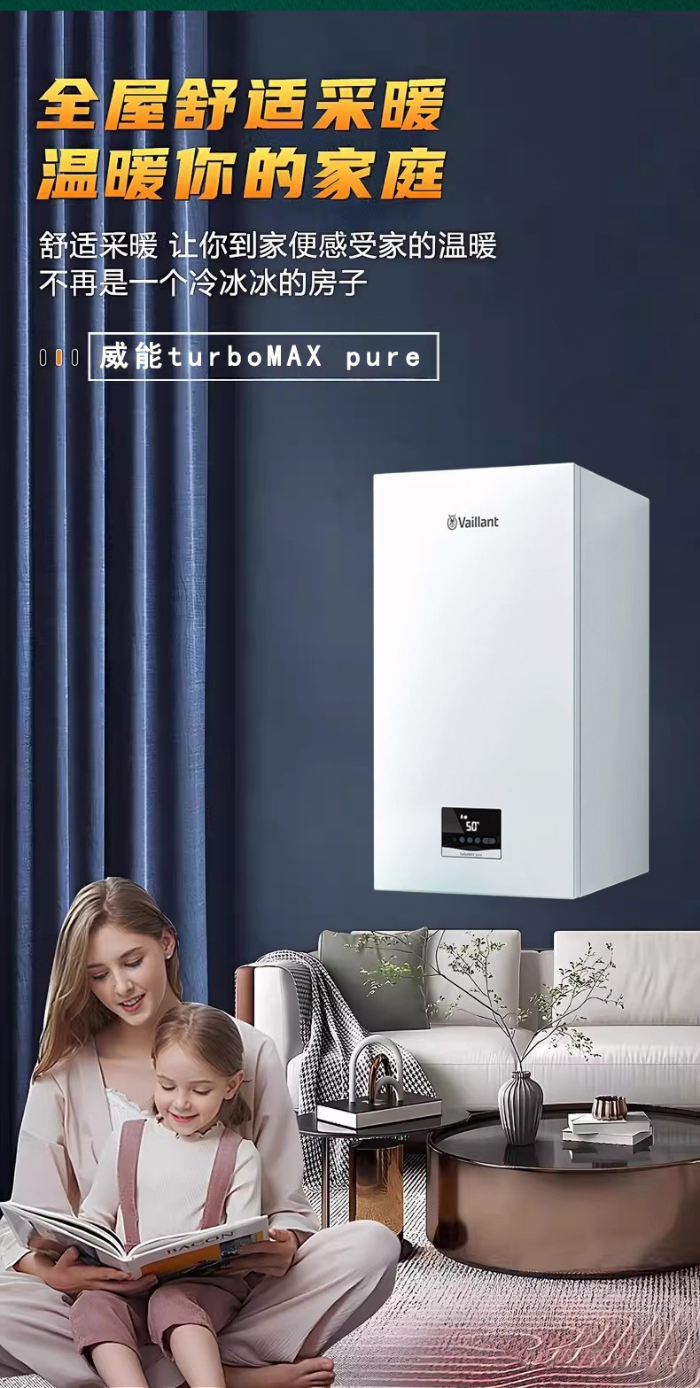 ①,此次全新上市的Vaillant turboMAX pure低氮型燃气采暖热水炉正是针对中国市场研发,配备的高效低NOx燃烧器将助力用户开启绿色生活。该产品采用全新火排不仅提高了火焰的稳定性,更增强了抗气源压力波动干扰的能力,使燃烧稳定且充分,保障家庭采暖、生活热水畅享无忧。威能国内组装36kw采暖热水两用壁挂炉集成化程度高,秉承德国工业一贯的优秀品质,同时融入现代化家电设计元素,产品外观时尚,设计新颖,集房间采暖和生活热水功能于一身,采用数字化步进电机燃气阀,超高精度控制燃气供给量,良好的长期运行能力,实现舒适性和经济性的统一,成为舒心的生活伴侣。